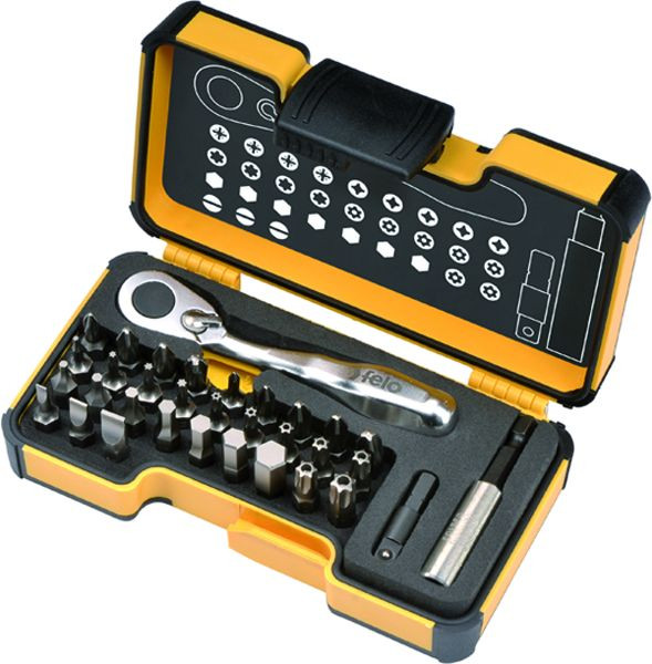 StrongBox XS 33 im Hosentaschenformat, gebaut für den harten Einsatz auf beengtem Raum, 33-teiliger Werkzeugssatz, in der stabilen, spritzwassergeschützten mini Strongbox, Ratsche einteilig aus Chrom-Vanadium Stahl geschmiedet, mit Bit Direktaufnahme, der leicht abgewinkelte Griff erleichtert das Arbeiten und schützt die Finger, super starke Umschaltmechanik mit Feinverzahnung (>65Nm, 60 Zähne, 6° Rückholwinkel), hochwertig und langlebig: 15 Jahre Garantie auf jedes Stück, Inhalt: 7 Stecknüsse (3/16 Zoll - 1/2 Zoll), 7 Schrauber-Bits (3,0x0,5, 5,0x0,8, 6,5x1,2, PH 0 - 3, PZ 1 - 3, TX® 6 - 8, TX® 10 TR - 40 TR), Adapter, Bit-Halter, Verlängerung, Ratsche 1/4 Zoll