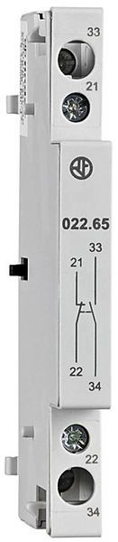 Hilfsschalter für Installationsschütze 22.44 und 22.64 mit 1 Öffner + 1 Schließer, In= 6 A, Kontaktmaterial AgNi, wird mechanisch vom Schütz angesteuert.