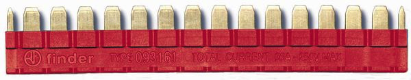 Kammbrücke, Dauerstrom 36 A, zum Verbinden der A1- oder A2-Anschlüsse von bis zu 16 Fassungen der Serie 39 oder 93, Farbe: rot