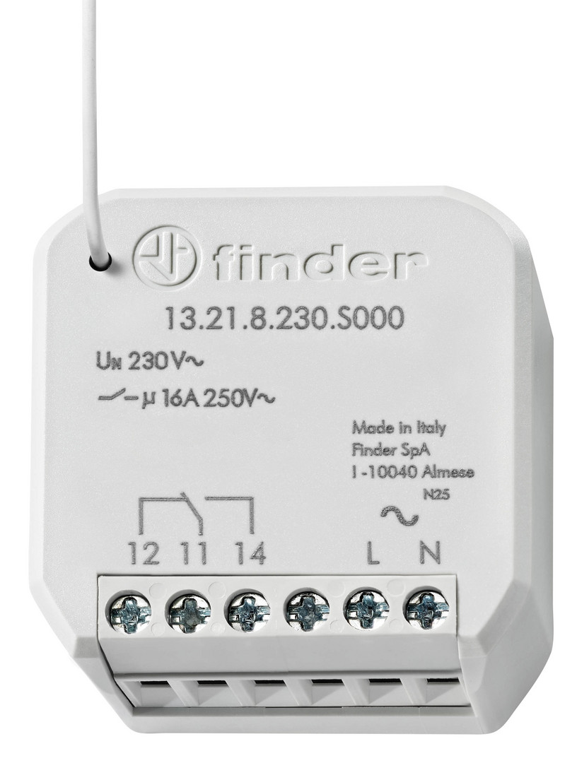 Funk-Schaltaktor (868 MHz) für Unterputzdosen-Montage, zur Anbindung über das Gateway2 (2. Generation) an ein BLISS2 Thermostat zur Steuerung von Heiz- und Kühlsystemen sowie Entfeuchtungssysteme in Ein- oder Mehrzonenanlagen, 1 Wechsler für 16 A/250 V AC, Kontaktmaterial: AgSnO2, Versorgungsspannung: 230 V AC (50/60 Hz), Max. Schaltleistung AC1: 3600 VA, 1-Phasenmotorlast AC3: 0.5 kW