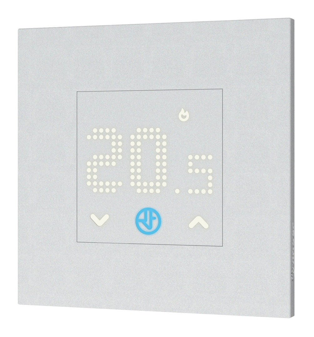 Unterputz Raumthermostat, flaches Design, 1 Wechsler 5 A/250 V AC, beleuchtetes LED Matrix Display mit einstellbarer Helligkeit, Tag-/Nachtfunktion, Sommer-/Winterfunktion, Displaysperre, Temperatureinstellbereich 0…+38 °C, externe Anschlussklemmen: NTC-Sensor (10 k?) oder potentialfreier Kontakt, Spannungsversorgung 110…230 V AC, IP20
