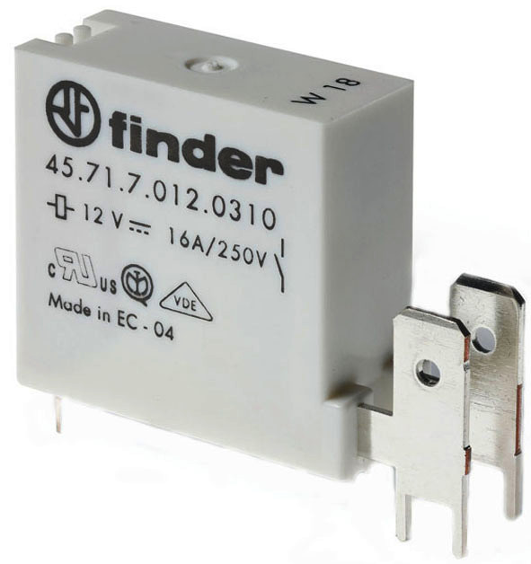 | Kurzbeschreibung | Relais, waschdicht, mit Print- und Flachsteckanschlüssen, 1 Schließer 16 A, Spule 12 V DC sensitiv |