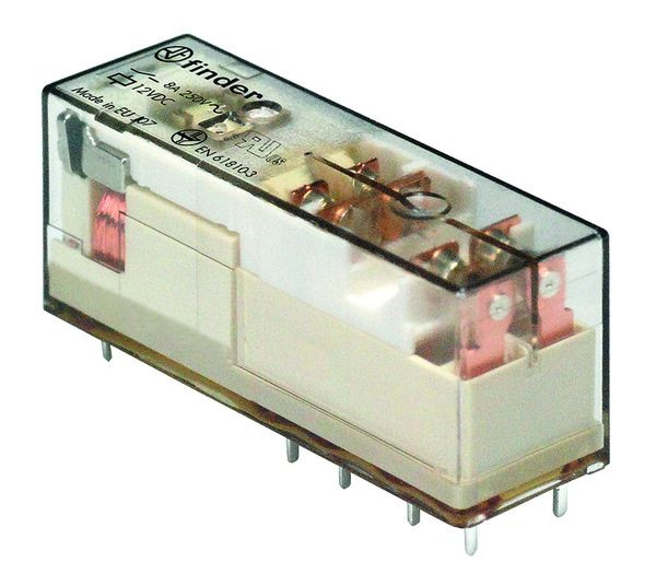 Printrelais mit zwangsgeführten Kontakten nach EN 61810-3, Typ A, 2 Schließer/2 Öffner für 8 A, Kontaktpinraster 5 mm, Kontaktmaterial AgSnO2, Versorgungsspannung 24 V DC, Spulenwiderstand 720 Ohm. Spulenleistung 0,8 W. Relaisschutzart RT III