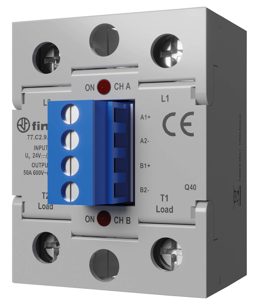 | Kurzbeschreibung | Relais mit 2 SSR-Kontakten 50 A/24 bis 660 V AC, Einschaltstrom bis 500 A für 10 ms, Eingang 24 V DC, 2 DC-Eingänge |