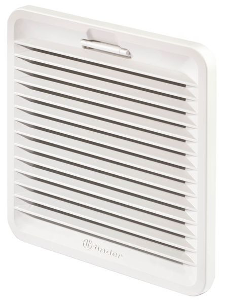 Austrittsfilter für Filterlüfter 7F.20.8.230.3100 und 7F.20.9.024.3100, Baugröße 3, Filtermatte nach Klasse G3, Haube aus Kunststoff nach UL94 V-O, lichtgrau, Filtermaterial aus Kunststofffasern, temperaturbeständig bis 100 °C., selbstverlöschend