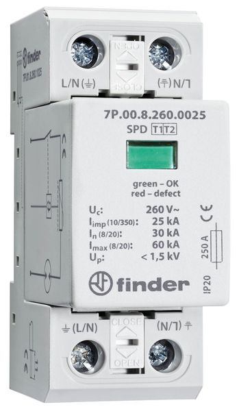 | Kurzbeschreibung | Überspannungsableiter Typ 1+2, Varistor und Funkenstrecke, für TN-S und TT-Netze |