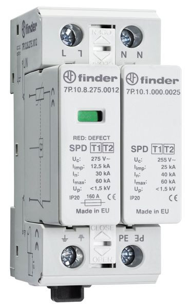 | Kurzbeschreibung | Überspannungsableiter Typ 1 + 2, Varistor zwischen L-N und Funkenstrecke, für 1-phasige TN-S und TT-Netze |