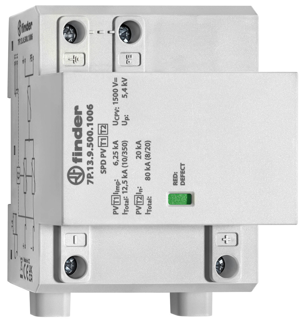 | Kurzbeschreibung | Blitz- und Überspannungsableiter Typ 1 + 2, für Photovoltaikanlagen bis 1500 V DC, mit Status-Rückmeldekontakt |