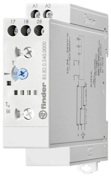 Monofunktionszeitrelais für DIN-Schiene, 22,5 mm breit, 2 Schließer für 16 A / 250 V AC, Kontaktmaterial AgNi, Funktion: Stern-Dreieck-Relais, 8 Zeitbereiche: 0,05 s - 10 Tage, Versorgungsspannung: 24-240 V AC/DC (50/60 Hz) Relaisschutzart: IP 20