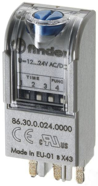 Multifunktions Zeitmodul, Ansprechverzögerung und Einschaltwischer, steckbar in Fassung 90.02/03, 92.03, 94.P3/P4, 94.02/03/04, 95.P3/P5, 95.03/05, 96.02/04, 97.P1/P2, 97.01/02, Zeitbereich: 0,05 s - 100 h, Versorgungsspannung: 230 V AC (50/60 Hz) Relaisschutzart: IP 20