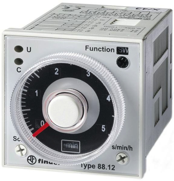 | Kurzbeschreibung | Zeitrelais für Fronteinbau, 6 Zeitfunktionen -100 Std., 2 Wechsler 5 A, für 24 bis 230 V AC/DC |