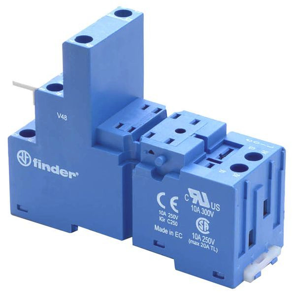 Relaisfassung mit Schraubanschlüssen, Farbe blau, mit integrierter Schnappbefestigung für Relais 55.32, Modulserie 99.02 und Zeitmodule 86.30, Farbe blau für Haltebügel 094.91.3