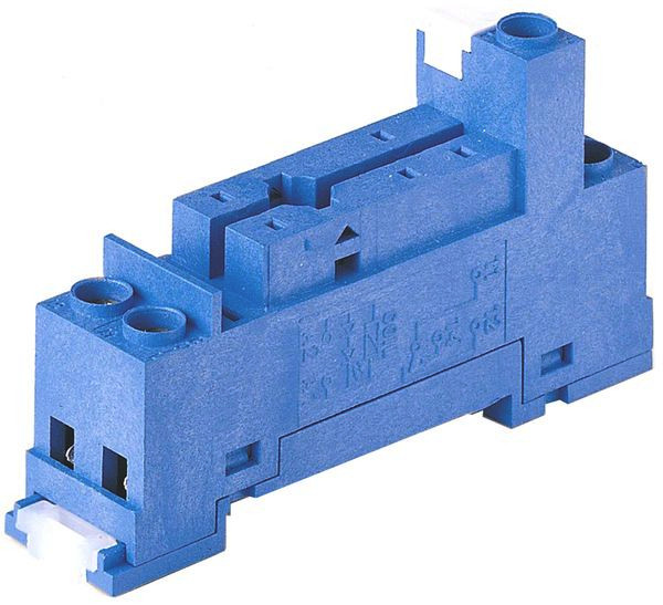 Relaisfassung mit Schraubanschlüssen, für DIN-Schiene, für Relais der Serie 40.31, integrierte Schnappbefestigung für Modulserie 99.01, Farbe blau