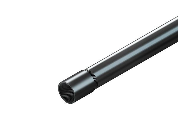 Kurzbeschreibung Gewinderohr, mit 1 aufgeschraubten Muffe, Außen-Ø 25 mm, Länge 3000mm, Stahl lackiert, RAL 9005, schwarz