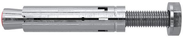 Der fischer Schwerlastanker TA M-S ist ein Innengewindeanker aus galvanisch verzinktem Stahl für die Vorsteckmontage. Bei der Montage wird der Konus in die Spreizhülse gezogen und verspannt diese gegen die Bohrlochwand. Die Kunststoffkappe schützt das Gewinde vor Verschmutzung. Dieses bleibt dadurch gängig. Der Schwerlastanker ist ideal für die Befestigung von Absturzsicherungen, Anlagen und Maschinen in ungerissenem Beton.