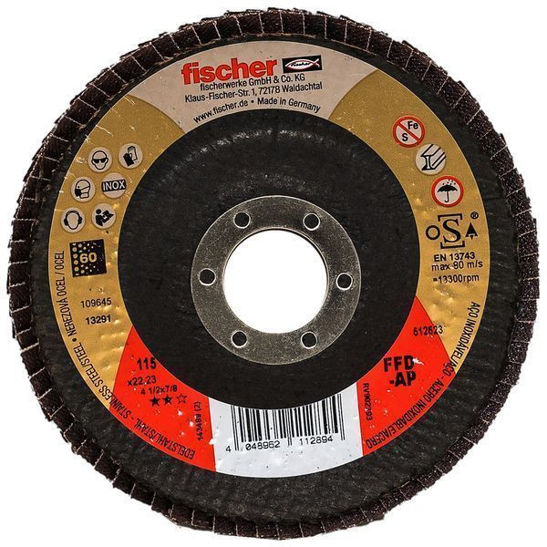 | Kurzbeschreibung | Fächerschleifscheibe AP 115 K60 Inox |