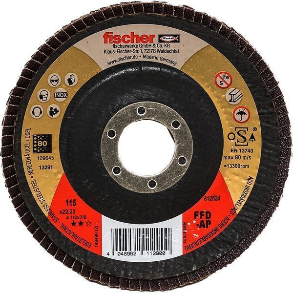 | Kurzbeschreibung | Fächerschleifscheibe AP 115 K80 Inox |