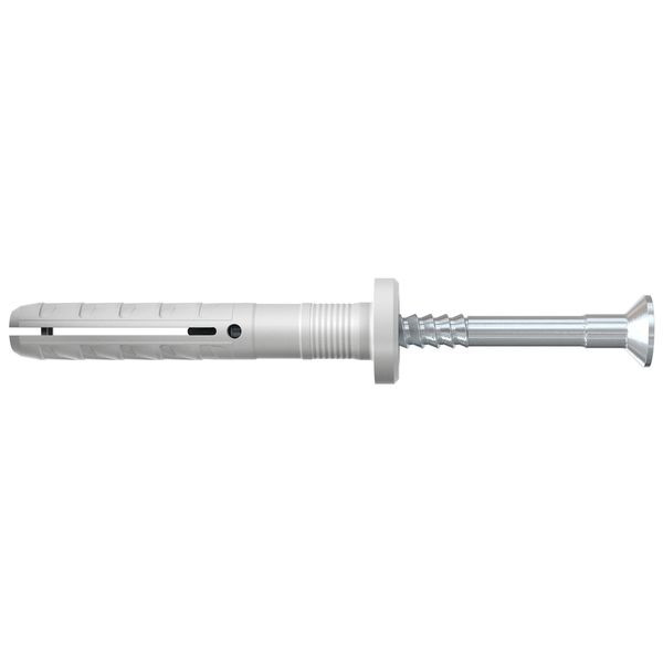 Der fischer Nageldübel N-F mit Flachkopf besteht aus einem hochwertigen Nylondübel und einer galvanisch verzinkten Nagelschraube. Diese sind für eine schnelle Montage bereits vormontiert. Der Nageldübel wird in der zeitsparenden Durchsteckmontage durch das Anbauteil eingeführt. Beim Einschlagen der Nagelschraube spreizt die Dübelhülse auf und verankert sicher im Baustoff. Der fischer Nageldübel N-F mit Flachkopf ist ideal für die Befestigung von Metallkonstruktionen in allen Baustoffen.