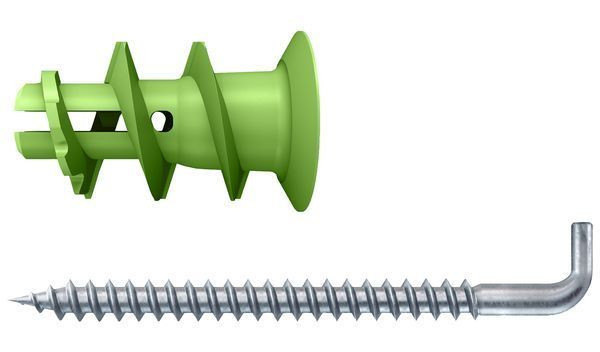 Das Granulat zur Herstellung des fischer Gipskartondübels GK Green wird mindestens zur Hälfte aus nachwachsenden Rohstoffen gewonnen. Diese stehen nicht in Konkurrenz zu Anbauflächen für Nahrungs- und Futtermittel. Der Gipskartondübel GK Green H verfügt über die gleichen Leistungsmerkmale und Tragfähigkeit wie das Original. Der Dübel wird in der Vorsteckmontage mit dem beigefügten Setzwerkzeug mit einem Akku-Schrauber oberflächenbündig in Gipskartonplatten eingedreht. Bis 15 mm Plattenstärke ist kein Vorbohren notwendig. Der fischer GK Green H wird komplett mitHakengeliefert. Dadurch ist er geeignet, um Bilder, Leuchten und Elektroinstallationen sicher und schnell zu befestigen.