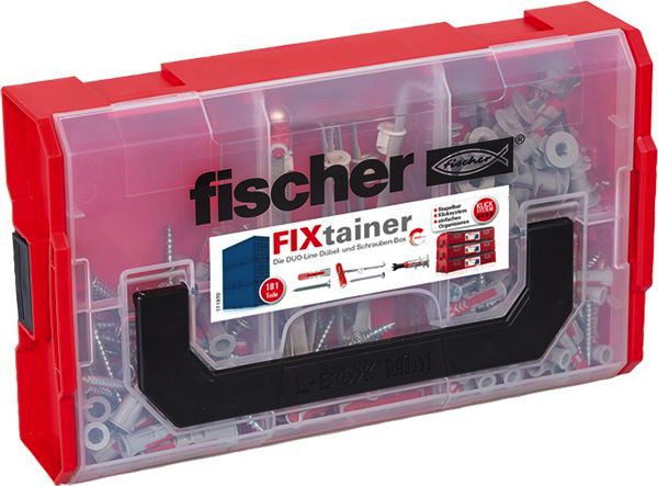 Diese fischer L-BOXX mini bietet eine praktische und übersichtliche Aufbewahrungslösung als Dübelset für Handwerker, Heimwerker und Hobbybastler. Die Box verfügt über einen transparentem Deckel, ein raffiniertes Klicksystem und einen stabilen Tragegriff, womit sie leicht und sicher zu transportieren ist. Die vorsortierte 181-teilige Box enthält 60 x DuoPower 6 x 30, 30 x DuoPower 8 x 40, 8 x DuoTec 10, 20 x DuoBlade, 40 x Dübelschraube Senkkopf 4,5 x 40 TX, 15 x Dübelschraube Senkkopf 5,0 x 55 TX, 8 x Dübelschraube PanHead 5,0 x 60 TX– optimal für verschiedene Befestigungsaufgaben. Der DuoPower nutzt seine intelligente 2-Komponenten-Technologie, um sich automatisch an verschiedene Baustoffe wie Plattenbaustoffe, Lochbaustoffe, Naturbaustoffe und Vollbaustoffe anzupassen. Der DuoTec Kippdübel überzeugt durch seinen geringen Bohrloch-Durchmesser und die einfache Handhabung in engen, gedämmten Hohlräumen, in denen er hohe Lasten zuverlässig aufnimmt. Der selbstbohrende DuoBlade ist ein fortschrittlicher Dübel, der sich dank seiner Technologie mit seiner scharfen Metallspitze genau ansetzen lässt, ganz ohne Spezialwerkzeug und Vorbohren, für einen einfachen Bohrvorgang und eine sichere Installation.