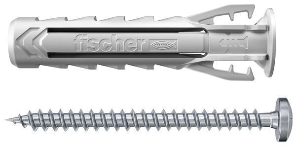 Der fischer Spreizdübel SX Plus ist durch seine 4-fach Spreizung der Spezialist für Vollbaustoffe wie Beton, Kalksandstein und Mauerwerk. Die speziellen Fixierflügel sorgen für eine Vorfixierung der Schraube, wodurch diese bei Überkopf Anwendungen nicht zusätzlich festgehalten werden muss. Diese Schraubenfixierung ermöglicht dem Anwender einen flexiblen und komfortablen Setzvorgang. Der flexible Dübelrand verhindert zudem ein Tieferrutschen des Dübels in das Bohrloch für eine sichere Montage. Die mitgelieferten Schrauben sind optimal auf den fischer Spreizdübel SX Plus abgestimmt. Das hochwertige Material aus Nylon garantiert dauerhaft sicheren Halt in einer Vielzahl von Voll- und Lochbaustoffen.