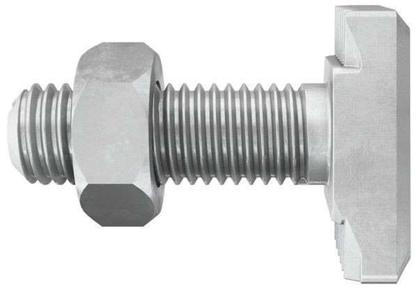 Verzahnte Hammerkopfschrauben, welche mit der passenden verzahnten Ankerschiene einen sauberen Formschluss bilden.