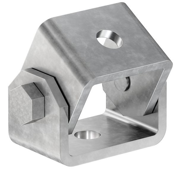 Das Universalgelenk FUH bietet vielfältige Anwendungsmöglichkeiten von der einfachen Abspannung mittels Gewindestangen zum Aussteifen von Schienensystemen oder zum Abhängen von Rohrleitungen an unebenen oder geneigten Untergründen.