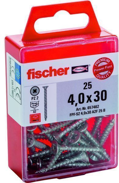 Die fischer PowerFast FPF-SZ A2F aus Edelstahl A2 ist eine Schraube mit Vollgewinde und Kreuzschlitz-Aufnahme. Der Senkkopf ermöglicht die oberflächenbündige Montage im Holz. Die Schraube eignet sich für Befestigungen von tragenden Bauteilen in beschichtetem Holz, Hartholz, Weichholz und Holzverbindungen. Beispielsweise bei allen Holzverbindungen im Außenbereich, Pergolen, Zäunen, Fassaden, Spielgeräten sowie Tür- und Metallbeschlägen.