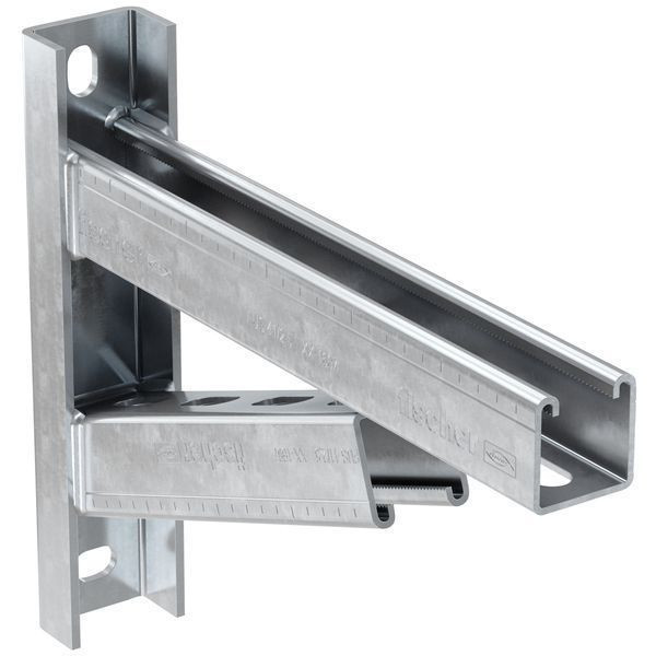 Die massive fischer Auslegerkonsole FCAM ermöglicht die schnelle und einfache Montage von Rohrtrassen entland der Wand. Einfache Ausrichtung der Konsole durch Langlöcher in der Grundplatte, die um 90° zu einander gedreht sind.