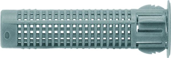 Die fischer Injektions-Ankerhülse FIS H K ist die Systemkomponente für eine fachgerechte und mörtelsparende Montage der Ankerstange FIS A oder des Innengewindeankers FIS E in Lochstein-Mauerwerk. Dazu können die fischer Injektionsmörtel FIS V, FIS VW HIGH SPEED, Multifunktionsmörtel, Montagemörtel und Montagemörtel Green verwendet werden. Die optimierte Gitterstruktur reduziert den Verbrauch des Injektionsmörtels. Beim Setzen der Ankerstange und des Innengewindeankers wird der Mörtel durch die Gitterstruktur gedrückt und verbindet sich im Formschluss mit dem Lochstein. Dadurch wird die Last in den Baustoff geleitet. Das Setzen erfolgt in der Vorsteckmontage. Mit der Injektions-Ankerhülse können nicht tragende Schichten überbrückt werden. Die Zulassungen der jeweiligen Injektionsmörtel sind zu beachten.