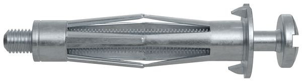 Der fischer Hohlraum-Metalldübel HM-S ist ein vielseitiger Hohlraumdübel mit metrischer Schraube für alle Plattenbaustoffe mit einer Wanddicke von 3 bis 50 mm. Der Dübel wird mit der Montagezange fischer HM-Z 1 in der Vorsteckmontage gesetzt. Mit der Zange wird der Dübel im Hohlraum gegen den Plattenbaustoff gezogen. Die Spreizarme klappen dabei auf und pressen sich an die Plattenrückseite. Alternativ ist auch die Montage mit einem Schraubendreher oder einem Akku-Schrauber möglich. Durch das metrische Innengewinde kann das Anbauteil mehrfach befestigt und wieder gelöst werden. Der fischer Hohlraum-Metalldübel HM ist geeignet für die Befestigung von Leuchten, Bildern und leichten Wandregalen im Innenraum.