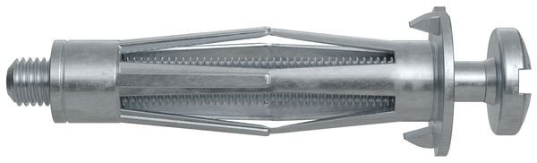 Der fischer Hohlraum-Metalldübel HM-S ist ein vielseitiger Hohlraumdübel mit metrischer Schraube für alle Plattenbaustoffe mit einer Wanddicke von 3 bis 50 mm. Der Dübel wird mit der Montagezange fischer HM-Z 1 in der Vorsteckmontage gesetzt. Mit der Zange wird der Dübel im Hohlraum gegen den Plattenbaustoff gezogen. Die Spreizarme klappen dabei auf und pressen sich an die Plattenrückseite. Alternativ ist auch die Montage mit einem Schraubendreher oder einem Akku-Schrauber möglich. Durch das metrische Innengewinde kann das Anbauteil mehrfach befestigt und wieder gelöst werden. Der fischer Hohlraum-Metalldübel HM ist geeignet für die Befestigung von Leuchten, Bildern und leichten Wandregalen im Innenraum.