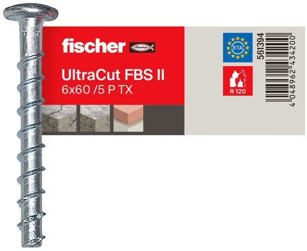 Die fischer Betonschraube UltraCut FBS II 6 P / LP ist eine Verankerungslösung aus galvanisch verzinktem Stahl und mit formschöner Linsenkopf-Aufnahme. Die UltraCut FBS II 6 P / LP ist ideal für die Befestigung von Rohren, Schienen, Lüftungskanälen und Anlagen für die Gebäudetechnik. Beim Eindrehen der Betonschraube mit einem Schlagschrauber in das Bohrloch schneiden sich die Gewindeflanken formschlüssig in den Beton und sorgen für höchste Tragfähigkeit. Der geringe Bohraufwand spart Zeit bei der Mehrfachbefestigung. Die Europäische Technische Bewertung für gerissenen und ungerissenen Beton sowie für seismische Belastungen und die Brandeignung für die Feuerwiderstandsklasse R 120 garantieren ein zusätzliches Plus an Sicherheit.