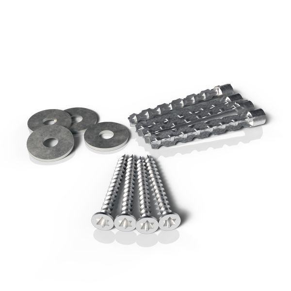 Zubehör für Brandschutzmanschetten AWM II zur Befestigung bestehend aus Metall, Vielzweckdübeln und Schrauben