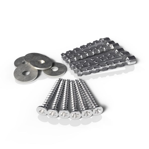 Zubehör für Brandschutzmanschetten AWM II zur Befestigung bestehend aus Metall, Vielzweckdübeln und Schrauben