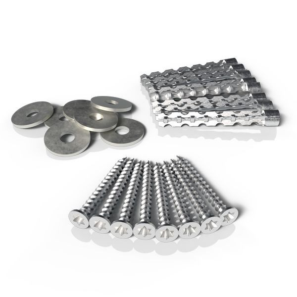 Zubehör für Brandschutzmanschetten AWM II zur Befestigung bestehend aus Metall, Vielzweckdübeln und Schrauben