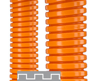 Vollkunststoff-Wellschlauch ROHRflex PA 6-L, HB (UL 94), Ringe, wirtschaftlich, geringerer Brandschutz, innen und außen gewellt, schmales Profil Material: Kunststoff (PA), Farbe: orange (auch in schwarz und grau lieferbar) Temperaturbereich: -25°C...+120°C Zulassungen: VDE geprüft EN/IEC 61386-23 / UL 1696 - CSA 22.2 UR-File-no E86359 / Lloyds Register / UK-CA / CE / REACH und RoHS konform Eigenschaften: luft- und flüssigkeitsdicht / ölbeständig bis +80°C / benzinbeständig / weitgehend säure- und lösungsmittelbeständig / silikon-, cadmium-, halogenfrei / selbstverlöschend / flammwidrig / gute UV-Beständigkeit / REACH und RoHS konform Einsatzbereich: Maschinenbau / Anlagenbau / Fahrzeugbau / Schienenfahrzeuge / Schiffsbau / Automation / Elektroanlagen