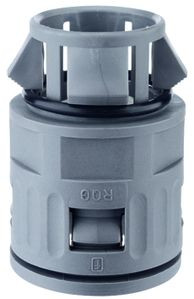 Kunststoff Schnellverschraubung gerade RQG1-S, IP 66 Steckanschluss, konisch dichtend, für ROHRflex Wellschläuche Material: Kunststoff (PA), Farbe: grau (auch in schwarz lieferbar) Temperaturbereich: -40°C ...+120°C Zulassungen: Zulassungen: VDE geprüft EN/IEC 61386-23 / UL 1696 CSA 22.2 UR-File-no E86359 / NFPA 130 - ASTM E 162-E 662 SMP 800-C / Lloyds Register of Shipping Eigenschaften: schnelle Montage ohne Gegenmutter / inkl. O-Ring / für Wandstärken 1-2,5 mm / silkon-, cadmium und halogenfrei / weitgehend säure- und lösungsmittelbeständig