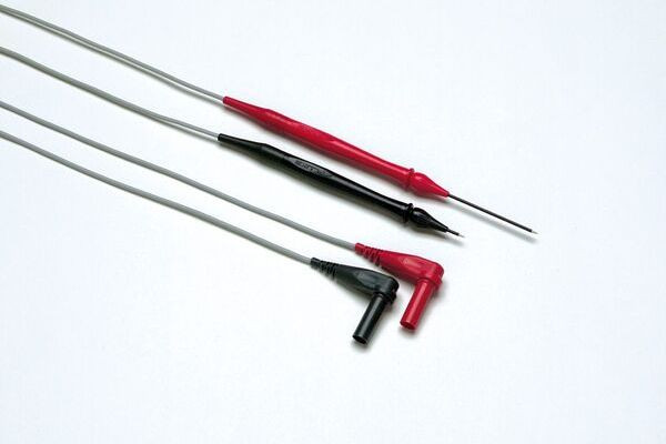 Ein Paar Messleitungen (rot, schwarz) mit scharfen Spitzen, die zwischen 0 und 76 mm auf die gewünschte Länge eingestellt werden können. Extra harte Messspitzen für lange Nutzungsdauer, flexible silikonisolierte Messleitungen,