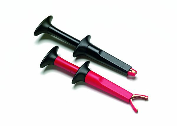Ein Paar kleine, isolierte, vernickelte Klemmbacken (rot, schwarz), stumpfe Spitze für runde Schraubköpfe bis zu 9,5 mm Durchmesser, empfohlen zur Nutzung mit TL222- und TL224-Messleitungen,