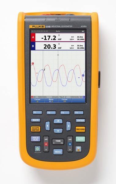 Die kompakten ScopeMeter der Serie 120B sind robuste Oszilloskope für die Fehlersuche an elektromechanischen und elektrischen Systemen in industriellen Bereichen. Ein wirklich integriertes Messgerät, das ein Oszilloskop, ein Multimeter und einen schnellen Schreiber in einem einzigen bedienungsfreundlichen Instrument vereint. Außerdem sind die ScopeMeter der Serie 120B mit der mobilen App Fluke Connect und der FlukeView Software für ScopeMeter ausgestattet, um eine weitere Zusammenarbeit, die Datenanalyse und die Archivierung von kritischen Testinformationen zu ermöglichen. Wichtige Merkmale, die die Nutzung eines Oszilloskops erheblich einfacher machen. Darstellung von Signalformen mit Connect and ViewTrigger- und Setup-Technologie sowie automatische Anzeige verwandter numerischer Messwerte mit Fluke Intellase Technologie - alles ohne manuelle Einstellungen. Mit der 'Recorder Event Detect'-Funktion werden schwer fassbare intermittierende Ereignisse erfasst und protokolliert, um sie in Ruhe ansehen und analysieren zu können.