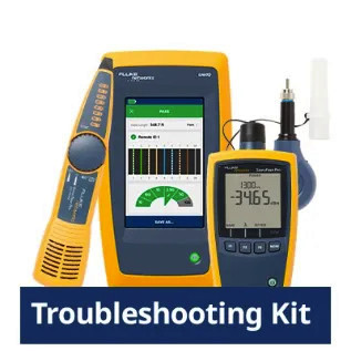 Das Profi-Kit zur Fehlerbehebung in Netzwerken unterstützt Leistungstests, Nachverfolgung und Fehlerbehebung bei Kupfer- und Glasfaserkabeln, Switch- und Netzwerkkonnektivität, Glasfaserinspektion und -reinigung.
