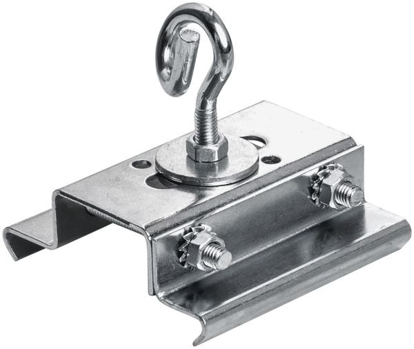 Halteblech aus verzinktem Stahlblech. Zum Abhängen von TRA-Tragschienen. Inklusive eines Schaukelhakens zum einhängen z.B. einer Knotenkette.