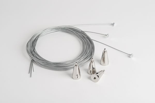 4-Punkt-Seilabhängung passend für LUX. Das Set besteht aus 4 justierbaren Drahtseilen (Länge 2m) und der passenden Deckenbefestigung.