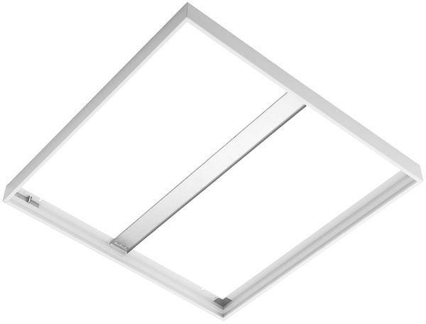 Aufbaurahmen für Einlegeleuchten, aus weißem Aluminiumprofil. Geeigent für LED-Paneelleuchten mit einem Rastermaß 625x625 max. Einbautiefe 40mm.