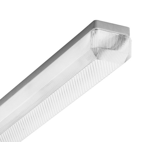 Feuchtraum-Anbauleuchte für LED-Röhre. Gehäuse glasfaserverstärktes Polyester, hellgrau, schwer entflammbar. Hochwertige umlaufende Dichtung (EPDM) mit hoher Feuchtigkeits- und thermische Beständigkeit. Eingebauter Geräteträger/Reflektor aus Stahlblech weiß. Prismatische Wanne/Abdeckung aus Acrylglas (PMMA), klar mit abgeschrägten Kanten. Sicherer und stabiler Halt der Wanne/Abdeckung durch innenliegende Verschlusstechnik. Zwei Einführungen mit Würgestopfen für Netzzuleitung mittig an der Unterseite der Leuchte. Kabelraum für Standard-Einzelleitung (NYM) bei Stirnseitige Zuführung der Netzzuleitung, sowie zu Weiterführung der Netzzuleitung bei Lichtbandmontage an der Unterseite der Leuchte vorhanden. 3-polige Anschlussklemme innenliegend mittig. Zugelassen für den Einsatz in Innenbereichen oder überdachte Außenbereiche, für Decken- und Wandmontage (siehe Montageanleitung). Wanne und Unterteil sind getrennt verpackt.