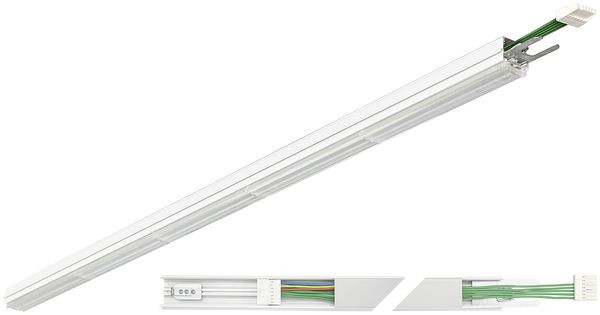 TRF LED-Lichtleiste mit einreihiger, linearer Lichtoptik aus PMMA. Wide Beam, 90° Abstrahlwinkel. Tragschiene und Lichteinsatz sind eine Einheit. Gehäuse aus profiliertem Aluminium mit Durchgangsverdrahtung, Stecksystem und Schnellverschlüssen.