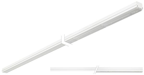 TRF LED-Lichtleiste mit einreihiger, linearer Lichtoptik aus PMMA, dimmbar. Medium Beam, 60° Abstrahlwinkel. Tragschiene und Lichteinsatz sind eine Einheit. Gehäuse aus profiliertem Aluminium. Mit Schnellverschluss, ohne Durchgangsverdrahtung. Mit montiertem Enddeckel. Verwendbar als Einzelleuchte oder als Endmodul im Lichtband.