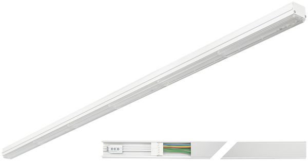 TRF LED-Lichtleiste mit einreihiger, linearer Lichtoptik aus PMMA, dimmbar. Wide Beam, 90° Abstrahlwinkel. Tragschiene und Lichteinsatz sind eine Einheit. Gehäuse aus profiliertem Aluminium. Mit Schnellverschluss, ohne Durchgangsverdrahtung. Mit montiertem Enddeckel. Verwendbar als Einzelleuchte oder als Endmodul im Lichtband.