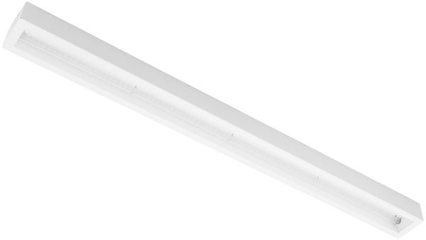 LED Anbauleuchte mit asymmetrischer Lichtverteilung, dimmbar. Stabiler Leuchtenkörper aus Stahlblech weiß, niedrige, zeitlose Bauform. Asymmetrischer Reflektor für die Wandbeleuchtung. Ideal geeignet für die Beleuchtung der Tafel in Unterrichtsräumen. Geeignet zur Montage direkt an der Decke. Zugelassen für den Einsatz in Innenbereichen.